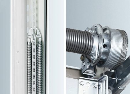 Potrójne pakiety sprężyn naciągowych i podwójne stalowe linki zapobiegają opadnięciu bramy nawet w przypadku pęknięcia sprężyn.